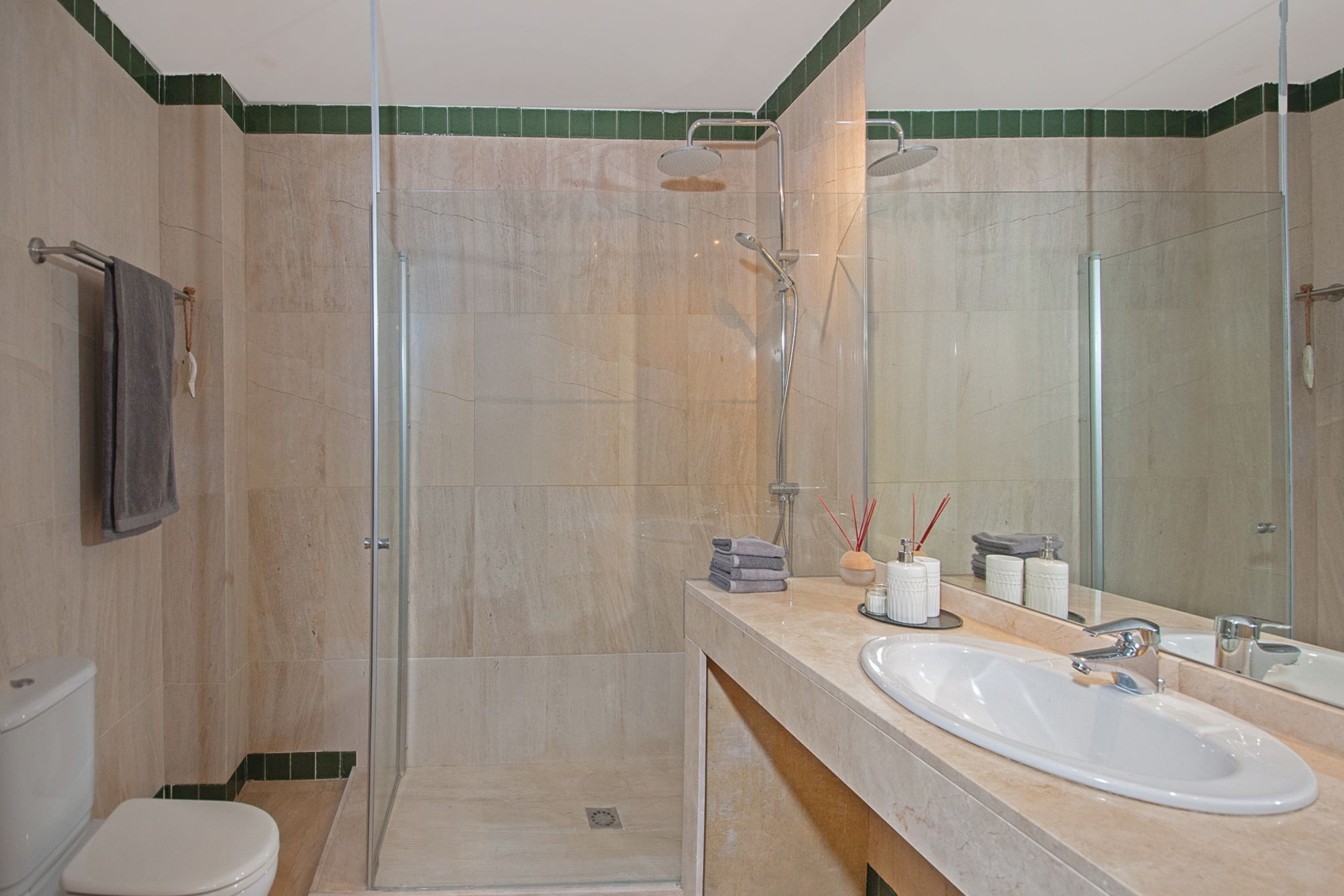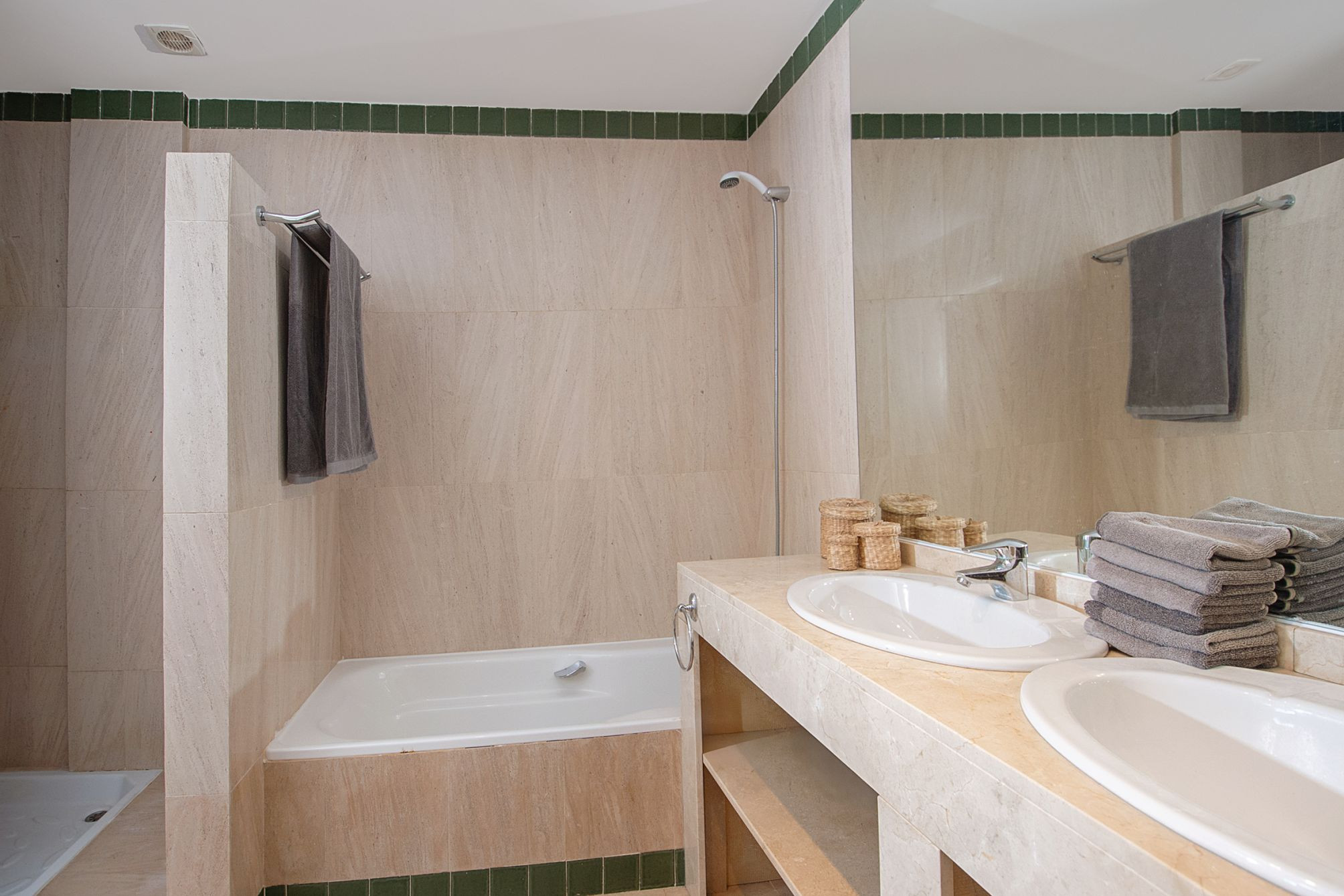 Las tres habitaciones tienen acceso directo a una gran terraza que ofrece una vista panorámica de la bahía y el Mediterráneo, creando así un refugio de paz e intimidad.